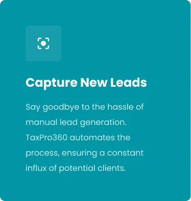 The ultimate solution for tax professionals overwhelmed by juggling multiple marketing software. Taxpro 360 streamlines your entire process, integrating all your tools into one powerful platform. Automate your sales and focus on what you do best—serving your clients. Let Taxpro 360 handle the rest, making your marketing effortless and efficient.